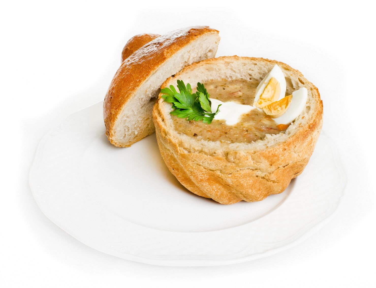 W 2 l wody ugotować wędzony boczek z dodatkiem włoszczyzny i ziemniaków pokrojonych w kostkę, aby powstał wywar (po ugotowaniu wyjąć włoszczyznę i boczek). Grzybki namoczyć w wodzie i obgotować. Pokroić boczek, cebulę, kiełbasę – wszystko zasmażyć. Połączyć wywar z wędzonego boczku z podsmażonymi cebulką, boczkiem i kiełbasą oraz grzybkami i wywarem z nich. Dodać sól, liście laurowe, ziele angielskie, pieprz, 2 ząbki czosnku, dolać zakwas. Gotować ok. 20 minut, dodać majeranek, natkę pietruszki i gotować jeszcze 10 minut. Doprawić wg uznania. Zupę podawać z ugotowanym na twardo jajkiem i kwaśną śmietaną.