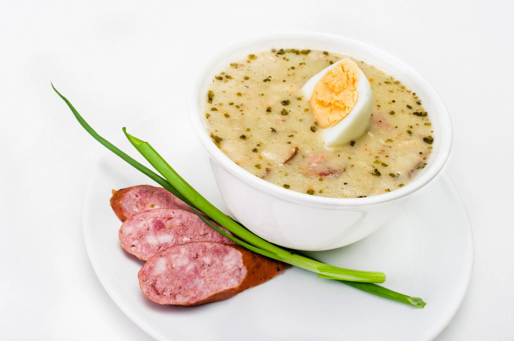 Żeberka gotować w wodzie do miękkości. Boczek pokroić w kostkę i dodać do żeberek. Zasmażyć białą i śląską kiełbasę pokrojoną w plastry i dodać do żurku. Do gotującego się wywaru wlać zakwas z ogórków kiszonych. Śmietanę wymieszać z mąką i dodać do żurku pod koniec gotowania. 6−8 jaj (wcześniej ugotowanych i pokrojonych na ćwiartki) wrzucić do żurku, następnie przyprawić do smaku przyprawami i rozgniecionym czosnkiem. Żurek ozdobić dużą ilością zieleniny.