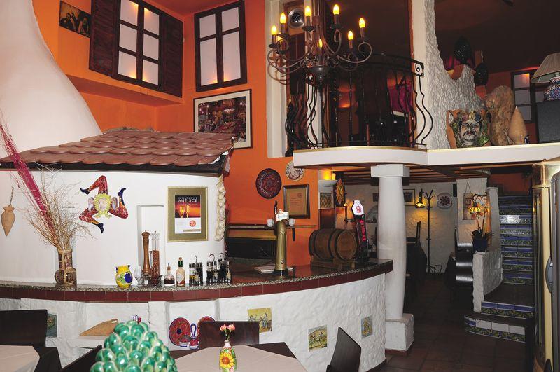 • W menu restauracji można znaleźć charakterystyczne dania dla kuchni sycylijskiej wyspy, m.in. makarony, warzywa (bakłażany, koper włoski, sycylijskie pomidory, oliwki), ryby (słynny miecznik "pesce spada" , sardynki), wreszcie wspaniałe lody, owoce, wina i wódki (słynna "grappa lemoncello").