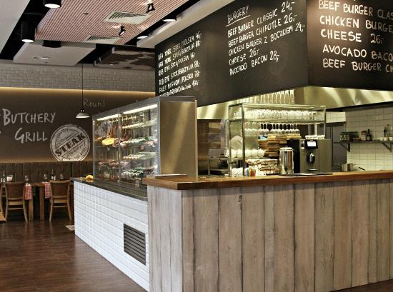 - Główną rolę w kulinarnym repertuarze Butchery&Grill odgrywa mięso - świeże, soczyste i doskonale przyrządzone, dopasowane do Państwa upodobań. Uzupełnieniem mięsnych rarytasów są kolorowe i smaczne dodatki, przygotowane ze świeżych i zdrowych, sezonowych warzyw i owoców. Całość dopełnia szeroki wybór szlachetnych win, pochodzących z różnych stron świata.