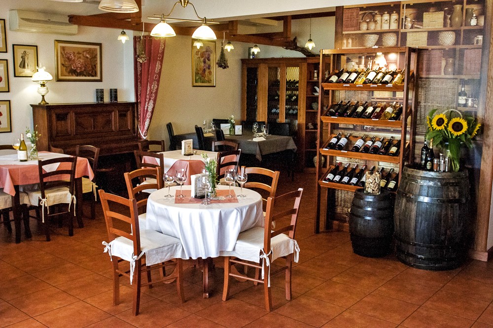- Restauracja posiada dwie sale: parter zaprasza ciepłym klimatem i winami z różnych zakątków świata, piętro to nowoczesna i przestronna sala bankietowo-szkoleniowa.