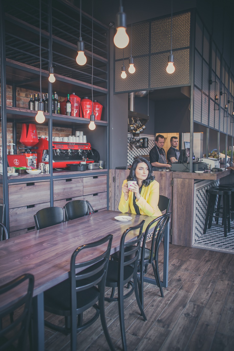 Katowice w ostatnim czasie bardzo rozwinęły się pod względem kultury i gastronomii. Powstało wiele ciekawych miejsc, które przyciągają swoich klientów świetnym jedzeniem, ale także designem na światowym poziomie. Jedną z takich knajp jest Kofeina Corner, miesząca się w samym centrum Katowic. Pierwszą rzeczą, która przykuła moją uwagę do tej restauracji jest industrialny wystrój wnętrza w iście miejskim klimacie. Drewno, cegła, metal, szkło i ceramika. Każdy element wystroju bardzo mocno nawiązuje do stylu industrialnego. Świetnym rozwiązaniem są miejsca siedzące przy ogromnej witrynie okiennej. Jest to bardzo modny element, który w ramach możliwości wykorzystują restauracje, a dzięki temu przyciągają takich freak`ów jak ja. Elementy dekoracyjne takie jak zielone płytki na ścianach, geometryczna podłoga przy barze czy czerwony kolor mają nadać wnętrzu odrobinę indywidualnego sznytu.