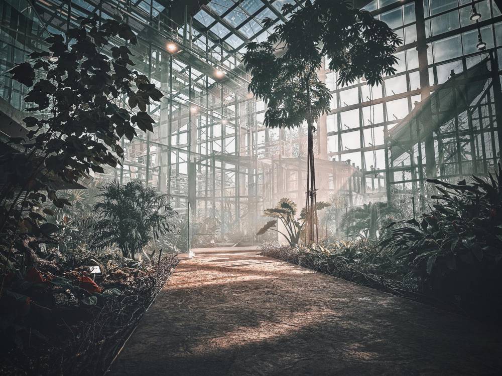 Palmiarnia została podzielona na trzy strefy klimatyczne w których możemy podziwiać zarówno przedstawicieli flory jak i fauny każdej ze stref. Ścieżka edukacyjna przeprowadza zwiedzającego przez pierwszą ze stref czyli umiarkowaną, jest ona porośnięta roślinnością śródziemnomorską pomiędzy którą znajdują się terraria z legwanami kubańskimi, waranami kolczastoogonowymi, żółwiami stepowymi oraz pancernikami dziewięciopaskowymi. Drugą strefą jest strefa pustynna, która zasiedlona jest przez kaktusy, sukulenty oraz helodermy meksykańskie.  Ostatnią strefą jest strefa tropikalna z roślinami strefy lasów deszczowych. W tej strefie nie zabrakło również zwierząt. Stefę tę zasiedlają takie okazy jak żółw jaszczurowaty, żółwiak chiński, czworooki, ary zielone, żako, tukany wielkie czy czubacze zmienne. W zależności do której szklarni się udamy, będziemy mogli oglądać różne przekroje botaniczne stref, z których pochodzą dane rośliny. W nowym obiekcie nie mogło zabraknąć nuty historii. Wiele gatunków roślin, które wcześniej zasiedlały dawne Egzotarium, teraz można podziwiać również w nowym. Z większych egzemplarzy dotrwały między innymi: daktylowiec nagięty, bananowiec Tuxla, strelicja królewska, mirt zwyczajny, juka gwatemalska, juka aloesowa, agawa amerykańska odm. Variegata i zwykła, Pachypodium Lamere’a, oraz draceny. Niższe rośliny to głównie podszyt, który ubogaca nasz obiekt barwami i kształtami. W poszczególnych szklarniach panują też odmienne warunki temperaturowe oraz wilgotnościowe: najcieplejszą szklarnią, a zarazem z największą wilgotnością powietrza jest strefa z roślinami tropikalnymi. W strefie umiarkowanej nazywanej śródziemnomorską, w zależności od pory roku, mamy rozbicie temperatur na okres lata i zimy. W okresie zimy rośliny przechodzą spoczynek, po którym ponownie mogą podjąć wegetację . Szklarnia pustynna jest jedną z bardziej interesujących, gdyż poza zróżnicowaniem temperatur kaktusy i sukulenty wchodzą w okres suchy. Czas ten dla nich jest również niezbędny, gdyż tylko dzięki niemu mogą wiosną zachwycić nas swoimi kwiatami.