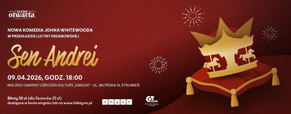 Sprzedaż biletów w cenie 30 zł (dla seniorów 25 zł) w kasie emgoku oraz online: KLIKNIJ TUTAJ