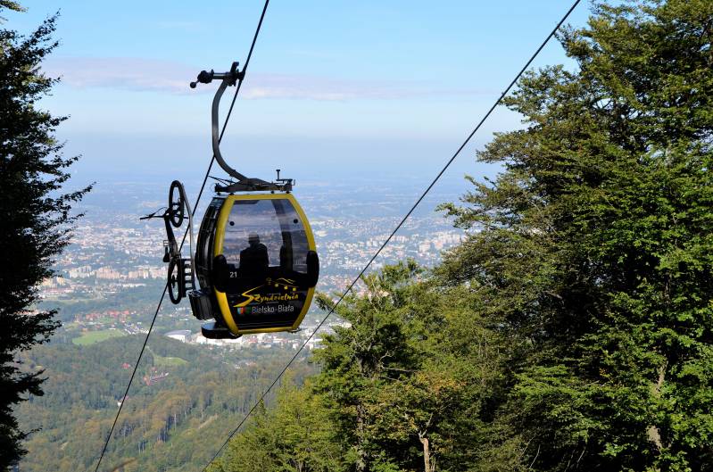 Kolej linową na Szyndzielnię w Bielsku-Białej zbudowali austriacy z firmy „Brüder Girak” już w 1953 roku. Jest ona zatem drugą po Kasprowym Wierchu koleją linową w Polsce! Kolej stała się gondolową po modernizacji w latach 1994-1995. W „gondolowym wyścigu” wyprzedziła więc zarówno Jaworzynę Krynicką w Beskidzie Sądeckim jak i Stóg Izerski w Sudetach. Stacja dolna znajduje się w Olszówce, bielskiej dzielnicy, skąd 6-osobowe wagoniki pokonują dystans 1810 metrów, by dotrzeć do górnej stacji pod szczytem Szyndzielni, położonej na wysokości blisko 960 metrów. Służy turystom pieszym i narciarzom, a także spacerowiczom, którzy chcą nacieszyć oczy rozległą panoramą chociażby Bielska-Białej. Właściciele oferują nawet wagonik klasy VIP, ale to na szczególne okazje. Pamiętajmy, że Szyndzielnia jest dla mieszkańców Bielska-Białej górą „domową”. Nawet administracyjnie przynależy do miasta. Niemieccy turyści z organizacji Beskidenverein już w 1897 roku zbudowali pod wierzchołkiem schronisko Kamitzer Platte. Szczęśliwie do dziś służy miłośnikom gór, ciesząc się zarazem zasłużoną sławą najstarszego schroniska w polskich Beskidach. Przy nim znajduje się alpinarium, którego początki sięgają 1905 roku. To dzieło bielszczanina, Edwarda Schnacka. I jeszcze ciekawostka. Skąd nazwa Szyndzielnia (także Szędzielnia). Od gwarowego określenia „szędzioły”, czyli „gonty”. Cóż, przez stulecia nie turystyka, lecz drzewa były prawdziwym bogactwem tej góry. Dziś piękne lasy chroni się w rezerwacie “Stok Szyndzielni”.