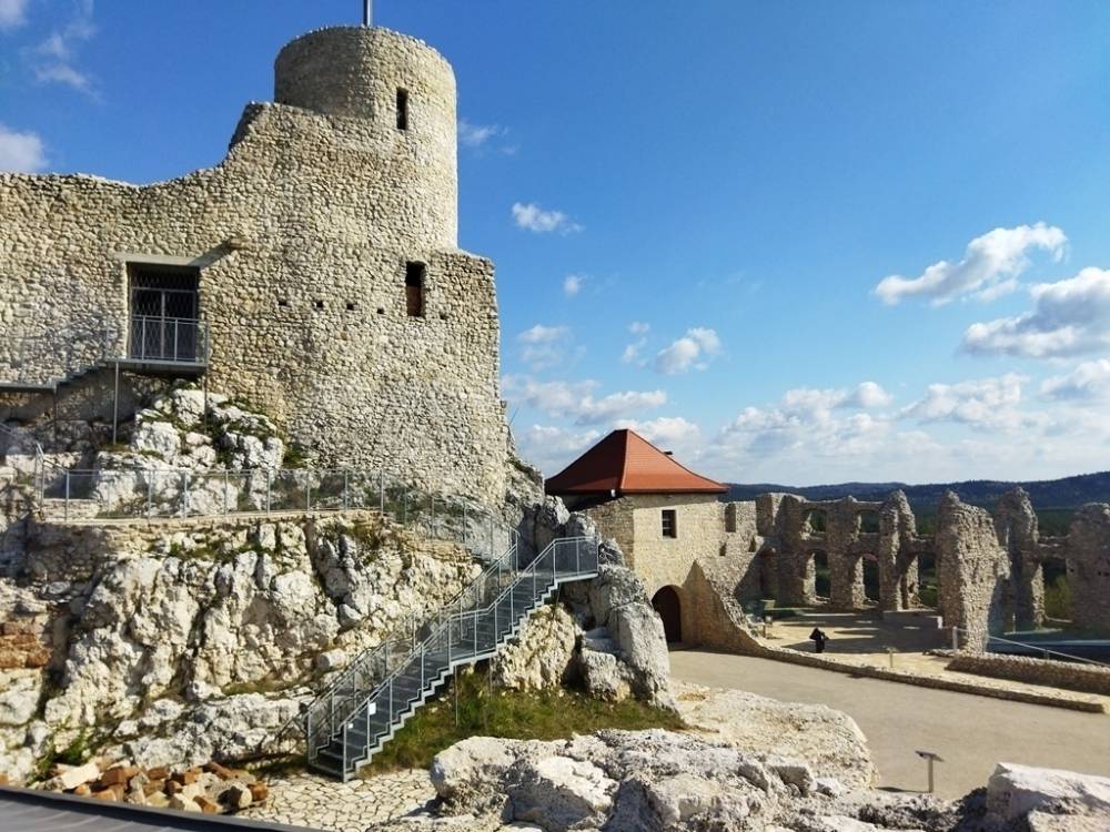 Rabsztyńskie wzgórze wapienne to idealne miejsce na wzniesienie warowni. Chyba właśnie tak myśleli nasi przodkowie, którzy w połowie XIV wieku na tutejszej skale postawili warownię z wysoką okrągłą wieżą. Średniowieczny zamek rycerski, który powstał w czasach Kazimierza Wielkiego, wielokrotnie zmieniał właścicieli. Byli nimi: Spytko z Melsztyna, rodzina Toporczyków zwana Rabsztyńskimi, później m.in. Bonerowie, aż na początku XVII wieku przeszedł w ręce Zygmunta Myszkowskiego. Jeszcze przed rokiem 1615 powstał tu zamek dolny, przyklejony do skały, na której stała stara twierdza.
