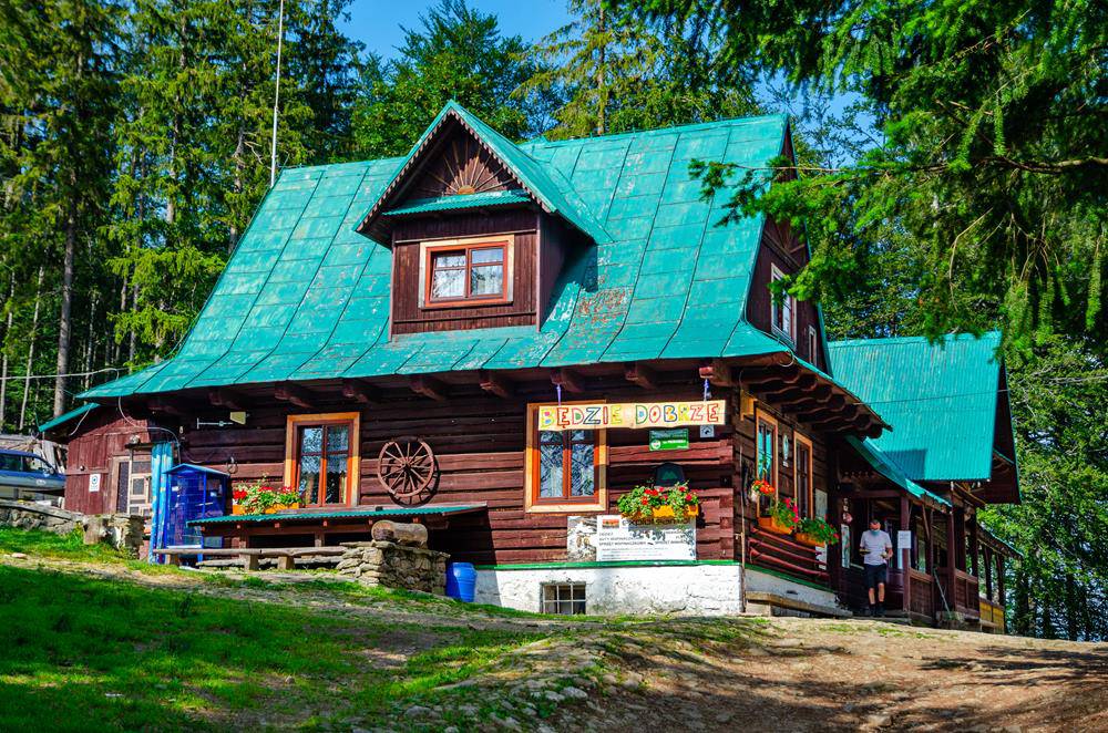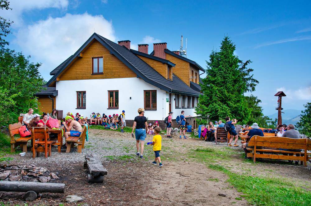 Wkrótce docieramy do schroniska na Przełęczy Przegibek, które ze względu na przyjazną atmosferę i domowe jedzenie jest niezwykle lubiane przez turystów. Schronisko jest też przyjazne zwierzętom. Można do niego wejść z psem.