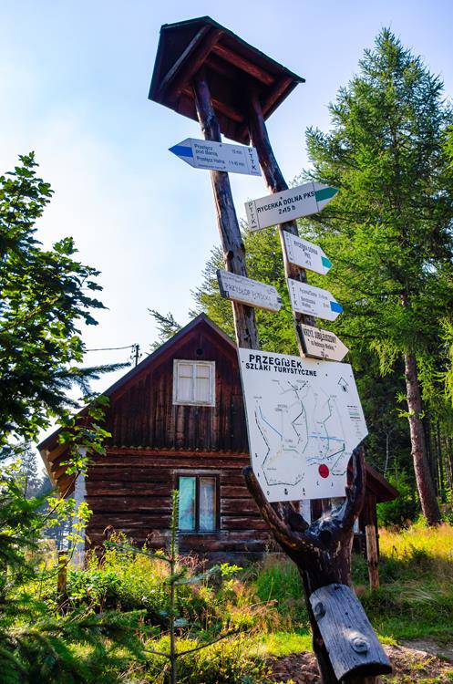Hala szczytowa, od dawien dawna wykorzystywana przez miejscowych górali do wypasu owiec, stanowi świetny punkt widokowy. Z Bendoszki schodzimy za niebieskimi znakami do pierwszego rozdroża i szlakowskazu kierującego do Rycerki Górnej.