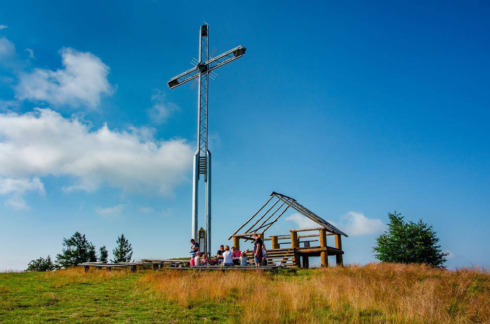 Na polanie szczytowej przebiega granica polsko-słowacka, a charakterystyczny krzyż symbolizuje pojednanie Polski, Czech oraz Słowacji.