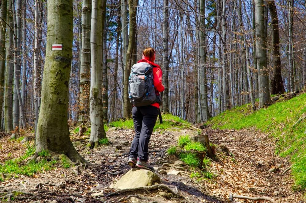 Podejście pod Bujakowski Groń, czerwony szlak na wysokości Zasolnicy