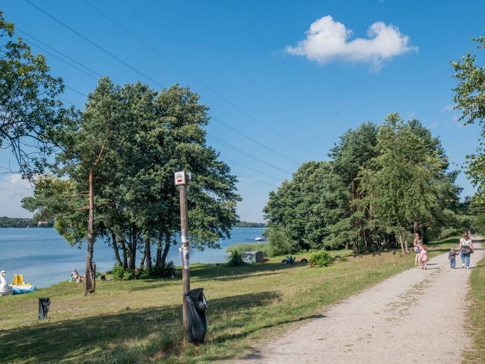 Na szlak dojechać można samochodem i zostawić go na jednym z wielu parkingów przy kąpielisku.