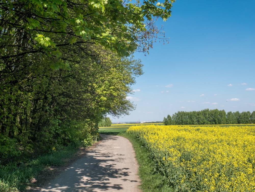 Szlak w Gliwicach prowadzi przez malownicze pola, które szczególnie zachwycają w maju, kiedy kwitnie rzepak. Największe atrakcje i ciekawe miejsca znajdują się w Rachowicach. Oglądać tam można drewniany kościół pw. Świętej Trójcy, znajdujący się na Szlaku Architektury Drewnianej Województwa Śląskiego, podobnie jak położona tuż obok niego zabytkowa stodoła.