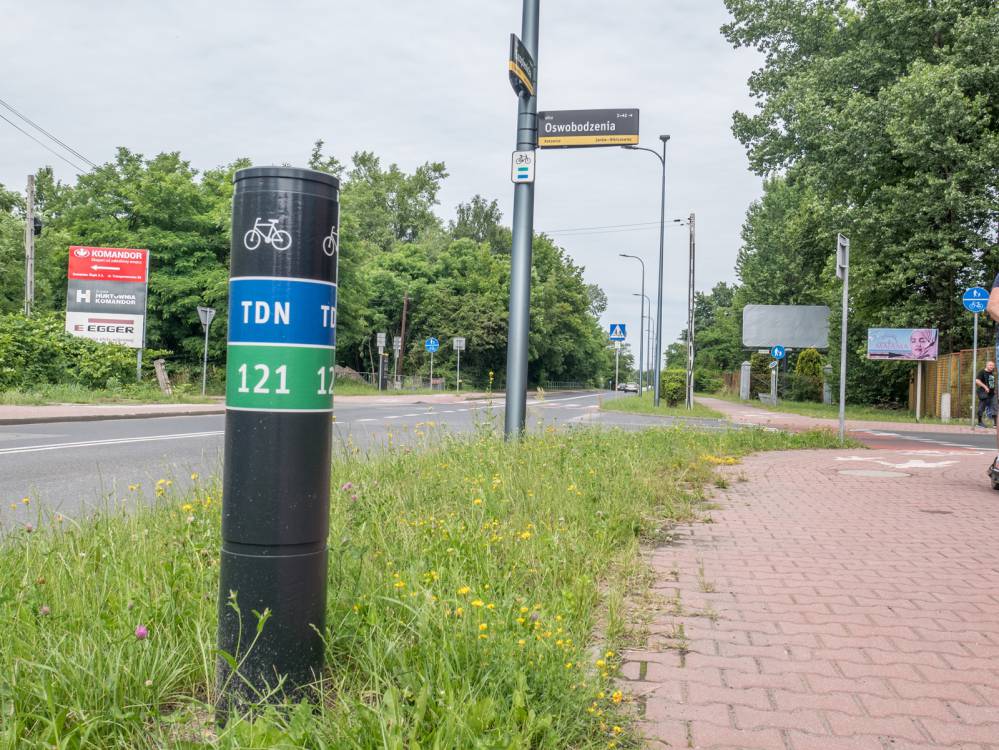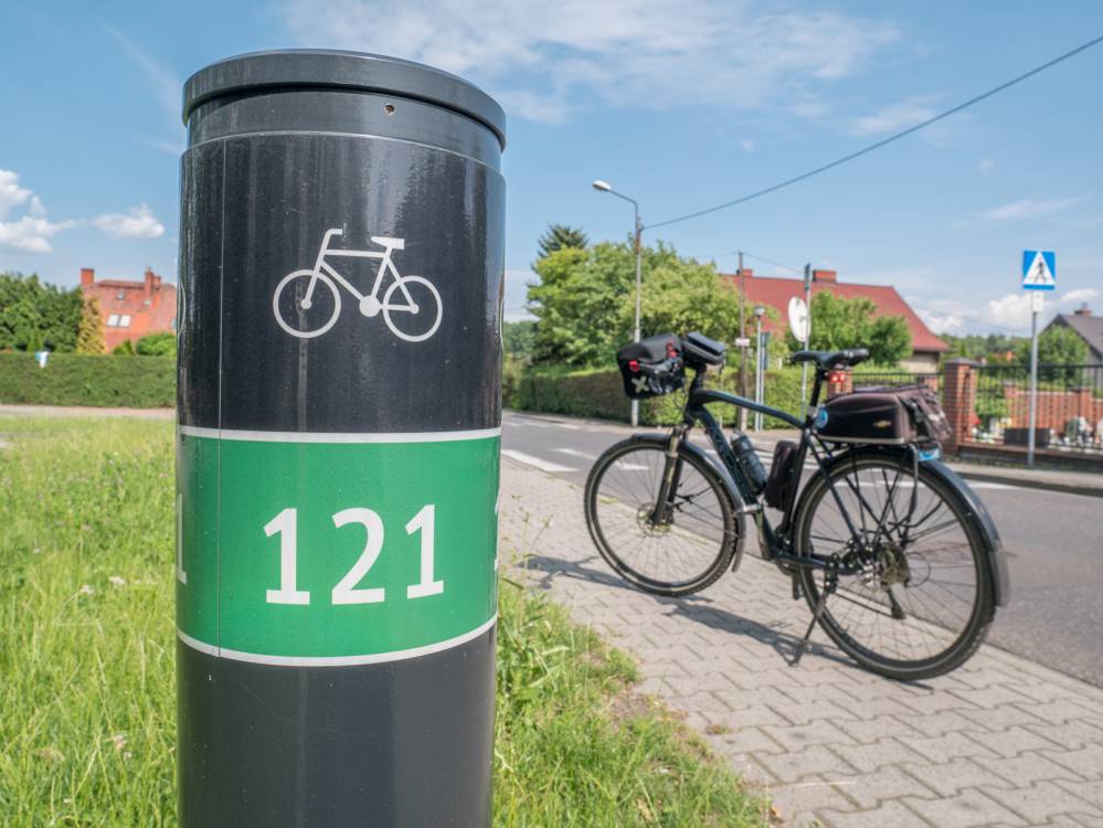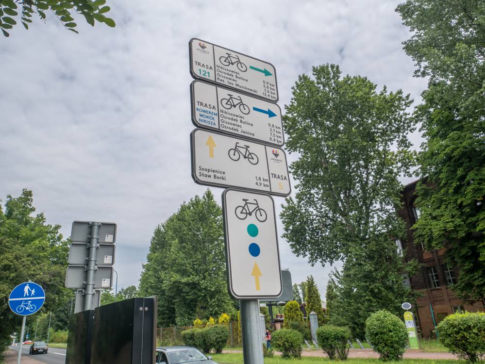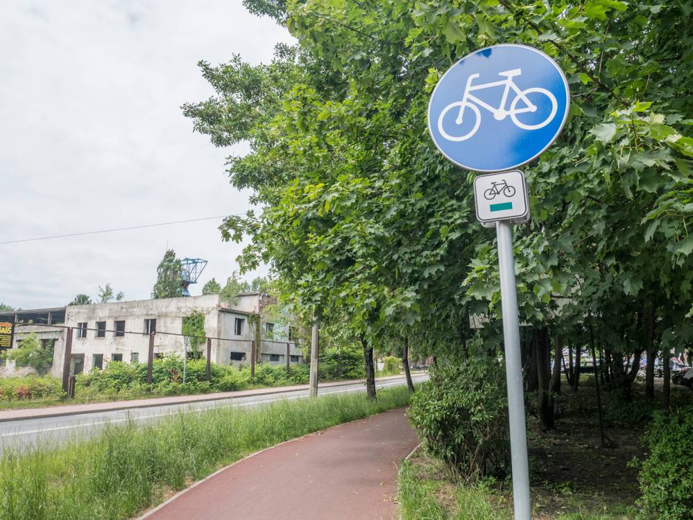 Zielony szlak 121 w Katowicach, oznakowanie, fot. Damian Berłowski - roweremposlasku.pl