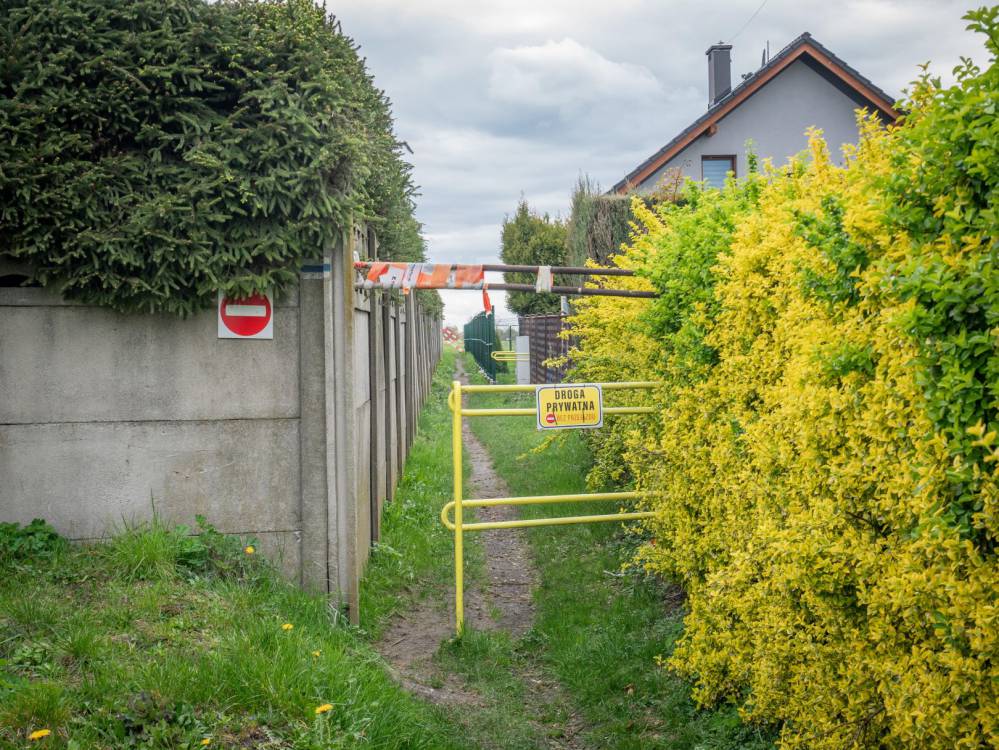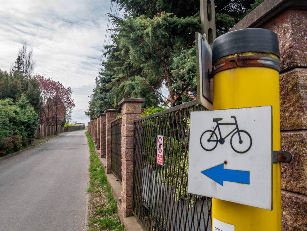 Szlak jest nieprzejezdny w Śmiłowicach! Trasa przebiega tam przez teren prywatny, który właściciel postanowił zamknąć siatką z drutem kolczastym. Pojawił się tam znak, że trasa zamknięta oraz ostrzeżenie o drucie kolczastym, ale nie ma żadnej informacji o objeździe, dlatego rowerzyści zdani są sami na siebie. Jeśli szukacie objazdu to od razu powiem Wam, że ten najbliższy przez pola do sklepu rowerowego, też jest zamknięty przez właściciela, bo to też teren prywatny! Więc jak objechać? Drogą krajową nr 44. Jest ona bardzo ruchliwa, ale jest chodnik.