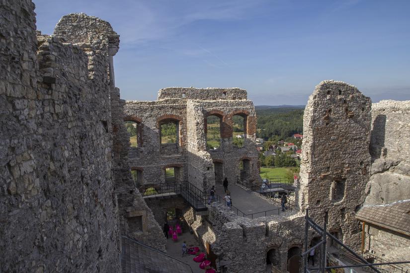 Zamek Ogrodzieniec w Podzamczu to prawdziwa perła Jury Krakowsko-Częstochowskiej. Majestatyczne ruiny niezwykle niegdyś okazałej budowli wznoszą się w sercu Jury, na najwyższym jej wzniesieniu - Górze Janowskiego o wysokości ponad 500 m n.p.m. Pięknie wkomponowane w naturalne masywy wapienne, stanowią jeden z najważniejszych elementów Szlaku Orlich Gniazd. Nie ma innego zamku na Jurze, który robiłby większe wrażenie na turystach i przyciągał tak liczne rzesze odwiedzających. Zamek swą historią sięga czasów króla Kazimierza Wielkiego czyli początku XIV wieku. Największą sławę i blask zyskał jednak w XVI stuleciu, kiedy właścicielami twierdzy byli Bonerowie - jeden z najmożniejszych rodów w całej Polsce. To właśnie zamek Ogrodzieniec stał się ich wspaniałą, renesansową rezydencją, która przepychem i bogactwem równać się mogła z samym Zamkiem Królewskim na Wawelu.