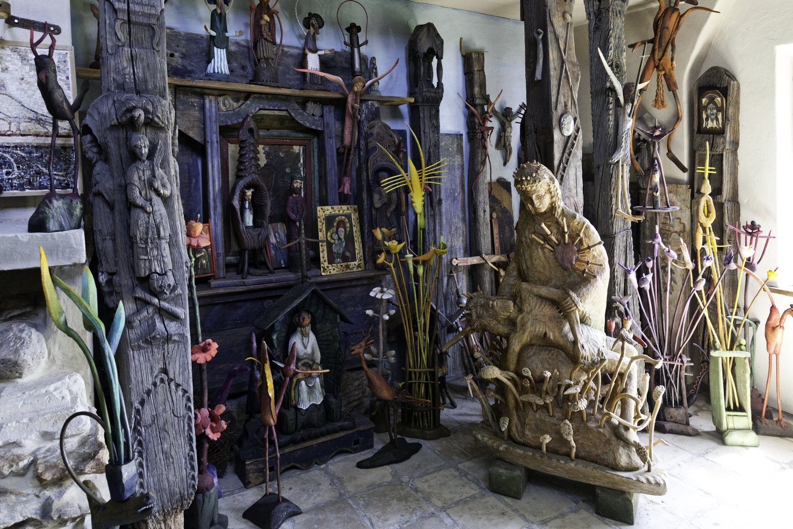 Antoni Toborowicz urodził się w 1941 r. Będąc artystą samoukiem, zdecydował się kiedyś na porzucenie pracy w tyskiej kopalni, gdy otrzymał większe zlecenie artystyczne. Prywatna galeria oraz Muzeum Krzyży i Kapliczek udostępnione zostały do zwiedzania w 1999 r. Znajdują się one w budynku zaprojektowanym przez samego artystę i wzniesionym z użyciem szczególnych materiałów. Obok rzeźb, w galerii znajdziemy drzeworyty, oryginalne meble oraz kominki. Toborowicz inspiruje się sztuką ludową, choć pewne źródło natchnienia stanowi dla niego także sztuka dzieci. Nieraz inspiruje artystę przyroda - choćby naturalne kształty drewna. Obok monumentalnych rzeźb sakralnych do jego dzieł należą zwierzęta, kwiaty czy stwory ze świata baśni. Artysta w swych pracach łączy drewno z kamieniem, metalem, skórą i wikliną. Kilka jego rzeźb zakupionych zostało przez Muzeum Śląskie w Katowicach, kilka innych znajduje się w muzeach etnograficznych w innych miastach. Twórca jest zdobywcą wielu prestiżowych nagród. Antoni Toborowicz zajmuje się także projektowaniem i wystrojem wnętrz sakralnych, a także domów prywatnych czy restauracji. W galerii znalazły się też prace malarskie córek artysty: Weroniki Witkowskiej oraz Julii i Małgorzaty Toborowicz. Do kolekcji zgromadzonych przez Antoniego Toborowicza należy zbiór starych krzyży przydrożnych oraz figur z kapliczek, tworzących prywatne muzeum. Innymi interesującymi dziełami są niebanalne, ozdabiane kominki, które artysta projektuje oraz realizuje na indywidualne zamówienia.